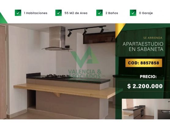 Se arrienda Apartaestudio en sabaneta, en Unidad cerrada con portería las 24 horas, salón social, piscina para niños y adultos, gimnasio, zona infantil, canchas y parqueadero de visitantes.
