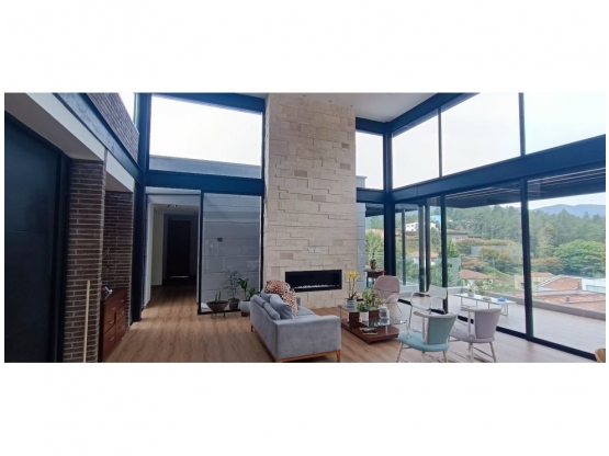 Moderna casa de un solo nivel ubicada en unidad cerrada en la parte alta del Escobero, rodeada de naturaleza y con una vista panorámica privilegiada a las montañas.